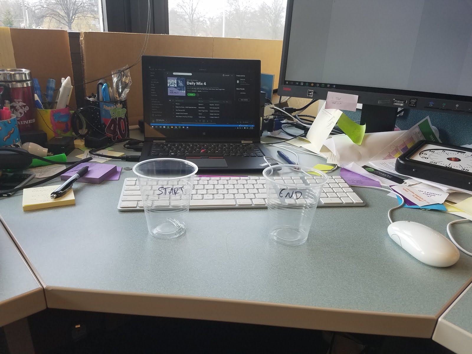 I used two simple cups and five paperclips. When I make a contact with a teacher I move a paperclip from the start of the day cup to the end of the day cup. My only rule is that the contact has to be face to face, electronic does not count. I already have plenty of virtual connections, I wanted to increase my human contacts.