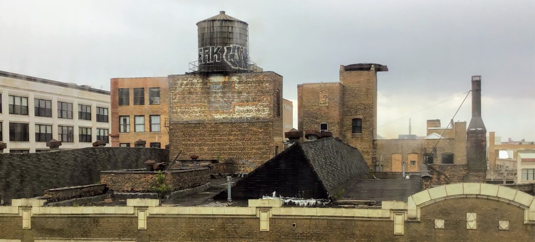 I opted to sit outside the keynote at a little spot with a screen so I could still watch but I didn’t have to be in the big room. To my right is a window overlooking some of the city. I happened to notice some trees and bushes growing on the roof of a building. This isn’t some green initiative but just some rebel greenery that decided the roof was ten best place to take root.