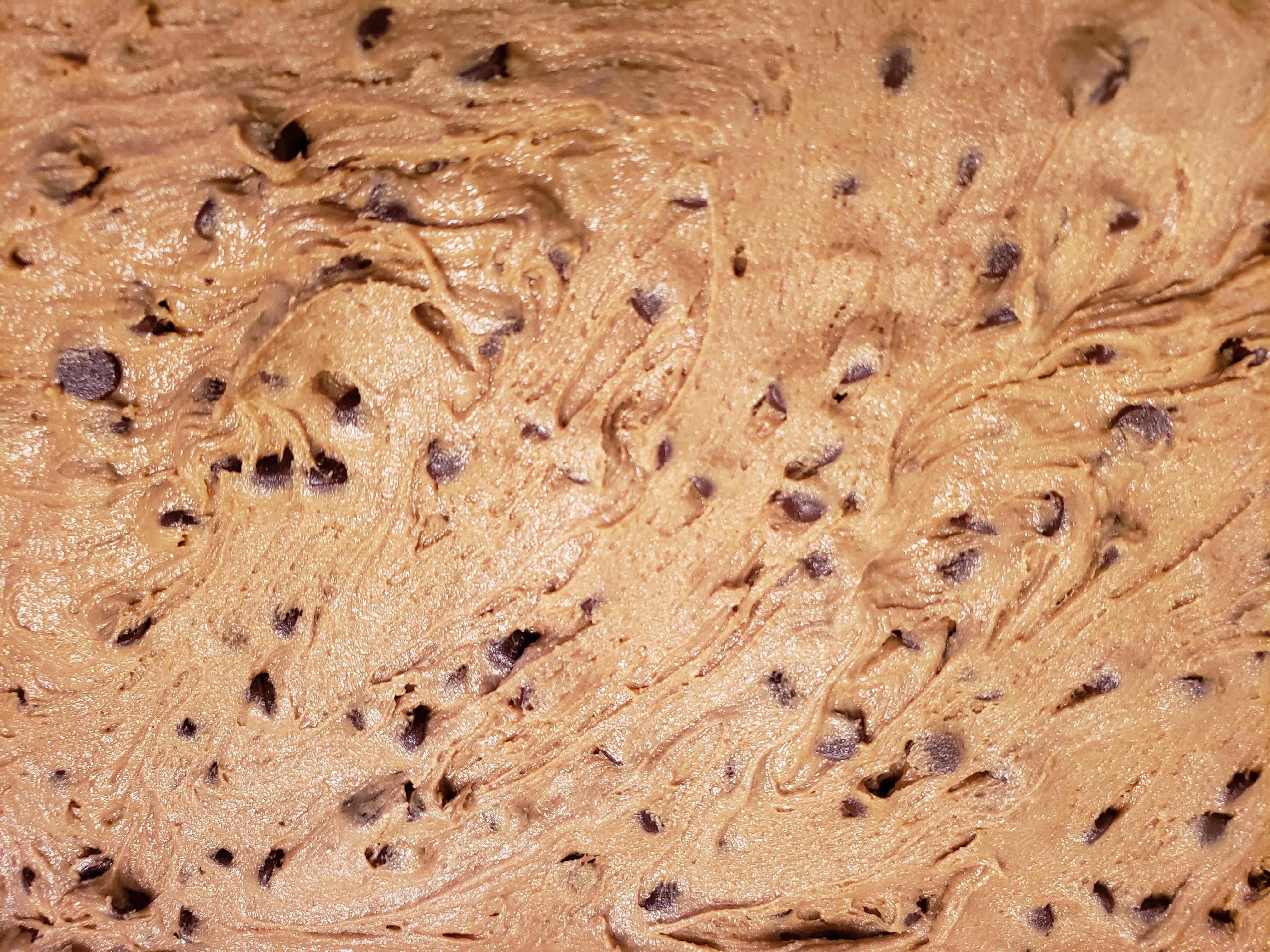 A shot before we put it into the over. It looks very similar to every other time we have made these bars. I did use all brown sugar so the batter is usually a tad darker. I do not think it smelled any different.