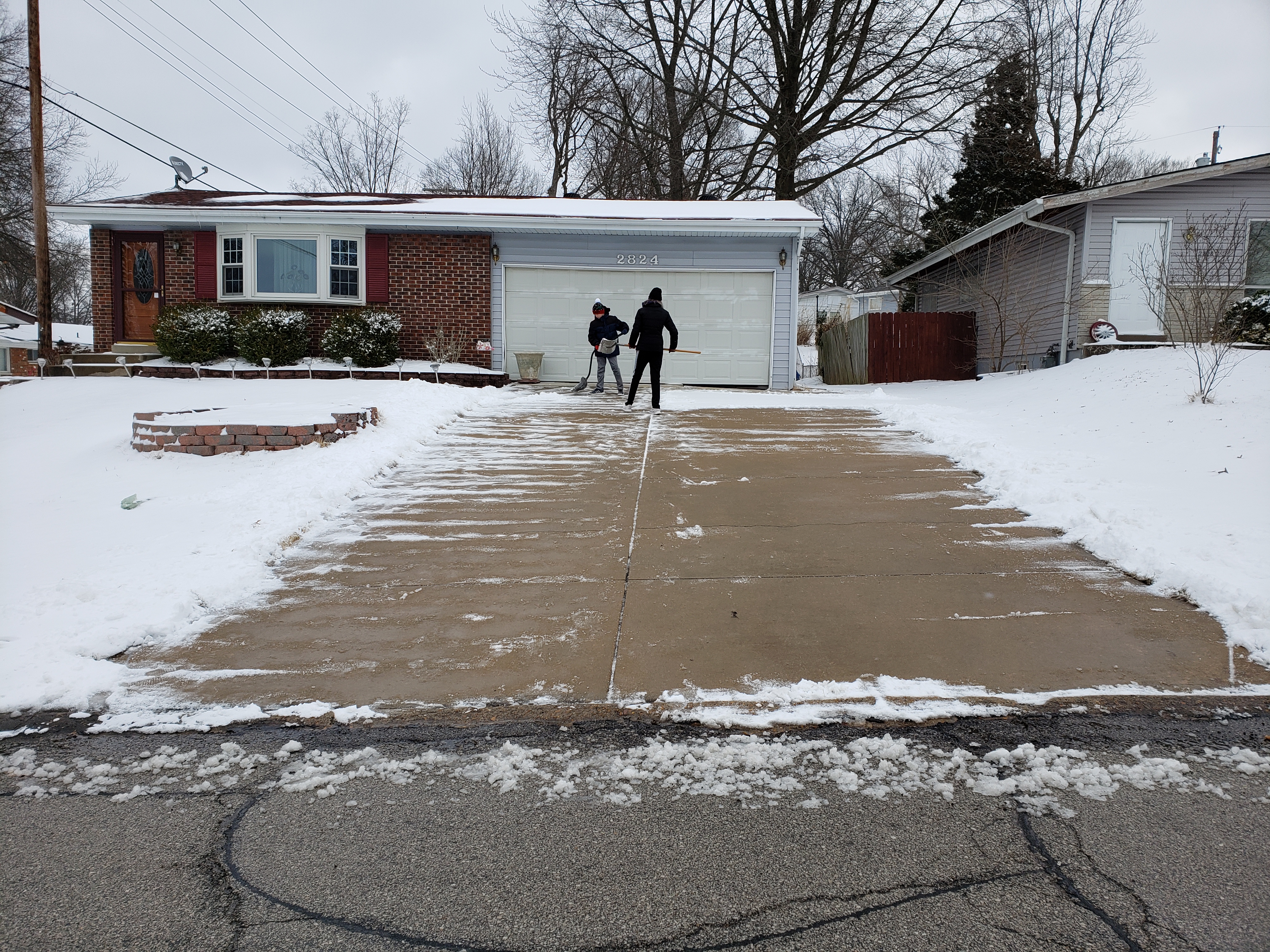 As we walked home another older gentleman leaned out his door and asked if we were done for the day. I responded yes thinking he was just making conversation not really realizing he was asking for our help. As my son explained to me what he was saying we quickly turned around and started on his drive.